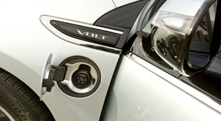 The Volt is powered by an electric motor and a battery pack with a 40-mile (65-kilometer) range. After that, a small internal combustion engine kicks in to generate electricity for a total range of 300 miles (480 kilometers). The battery pack can be recharged from a standard home outlet.