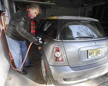The EPA guidelines, developed with guidance from automakers, figure that cars like the Volt will travel more on straight electricity in the city than on the highway. If a person drives the Volt less than 40 miles (65 kilometers), in theory they could go without using gasoline.