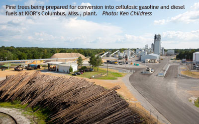 In Columbus, Miss., KiOR has spent more than $200 million on a plant that is supposed to mix shredded wood waste with a patented catalyst, powdered to talcumlike consistency. Its process does in a few seconds what takes nature millions of years: removes the oxygen from the biomass and converts the other main ingredients, hydrogen and carbon, into molecules that can then be processed into gasoline and diesel fuel.